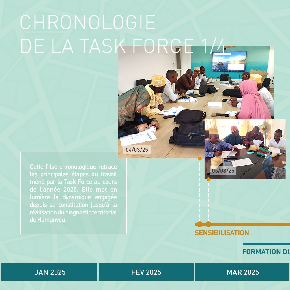 Après 8 mois de formation et de travail préparatoire, la task force a pu passer à la rédaction du diagnostic territorial de la commune de Hamanvou à partir du mois d’octobre 2025. Cette rédaction collaborative du rapport a permis de donner du sens au travail de recherche et de collecte de données réalisé par la task force tout au long de l’année. Le rapport est à consulter ici.